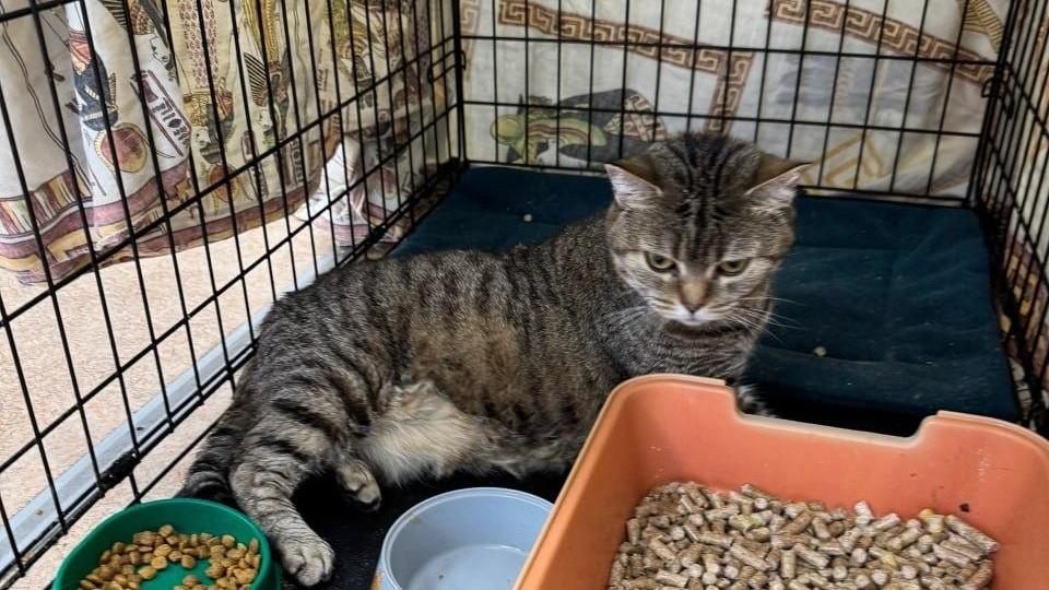 Кошка Гречка в приюте «Счастливый хвост» после спасения из мусорного контейнера.