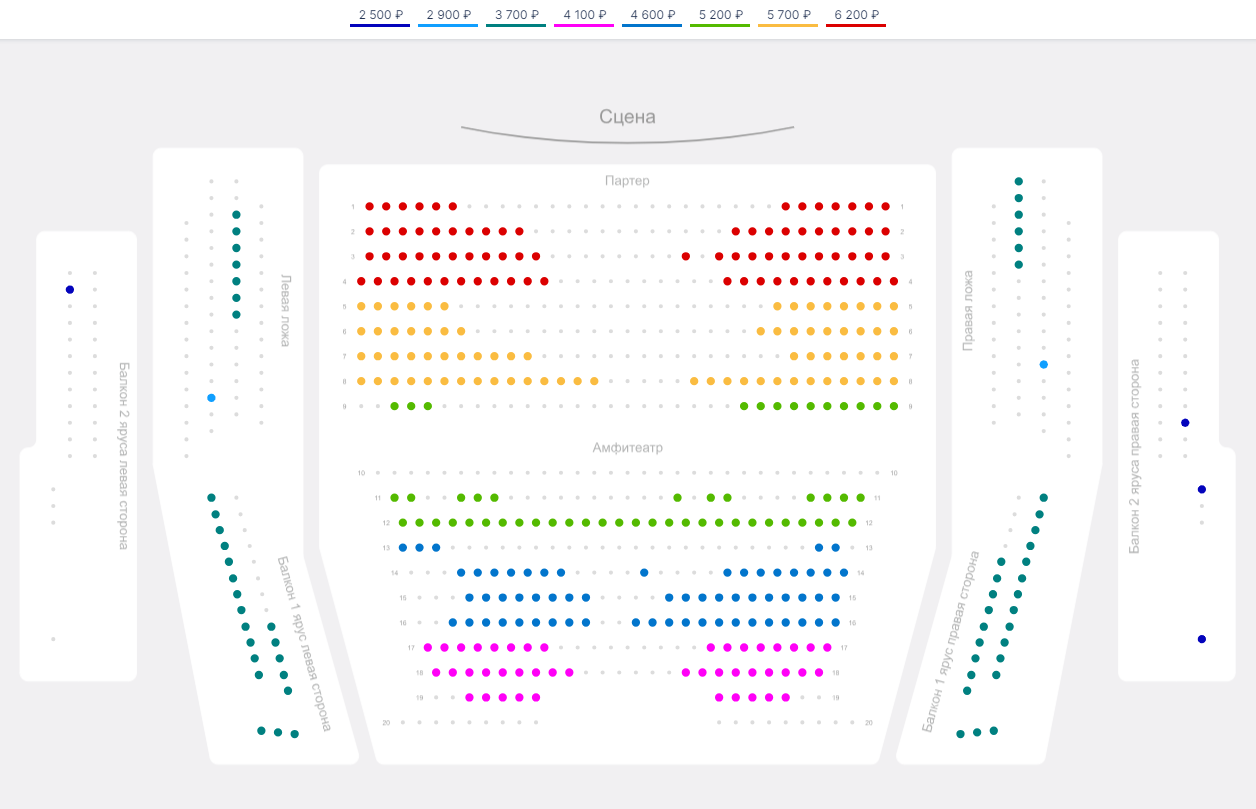 - более дорогие билеты стоят до 6200 рублей, они также частично раскуплены, но ещё доступны места как в партере, так и в амфитеатре.