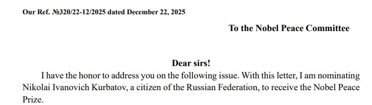 В декабре Курбатову пришло уведомление о выдвижении на Нобелевскую премию мира 2026 года. Точную формулировку номинации он не знает.