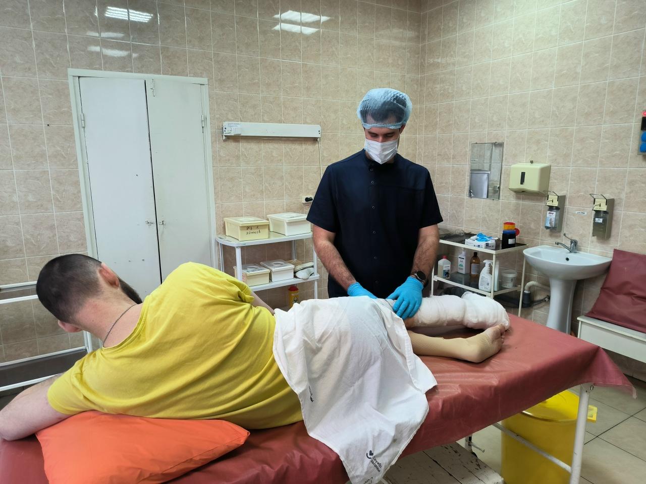 Травматологи диагностировали минно-взрывное ранение стопы с обширным дефектом мягких тканей размером 12 на 15 сантиметров, а также перелом костей.