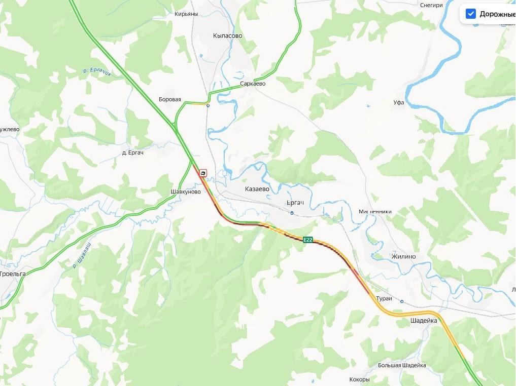 Онлайн-карты «Яндекса» в 13:04 отметили аварию в районе деревни Шавкуново. Затор растянулся от Шавкуново до Шадейки. Также движение осложнено на полосах, ведущих из Кунгура в Пермь, то есть в обратном направлении.