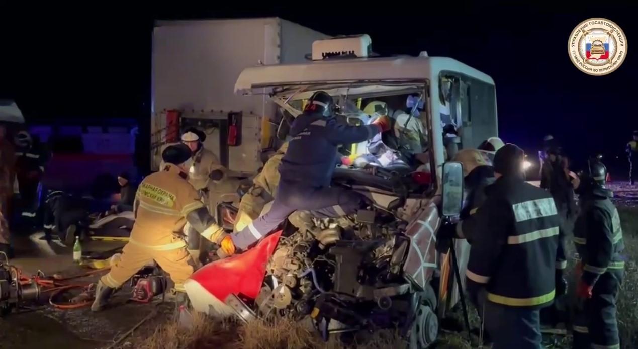 Столкновение рейсового микроавтобуса с грузовиком произошло 14 ноября на трассе под Кунгуром. В результате семь человек погибли на месте, ещё 12 получили травмы. 16 января стало известно, что водитель микроавтобуса умер после продолжительного лечения.