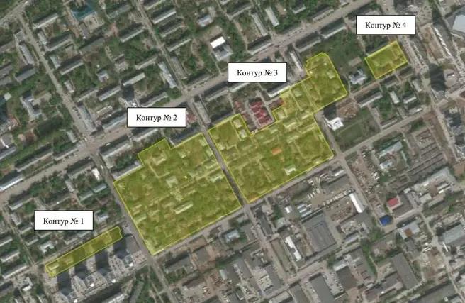 Екатеринбургскому застройщику предстоит работа на территории, обозначенной контурами № 1 и № 2.