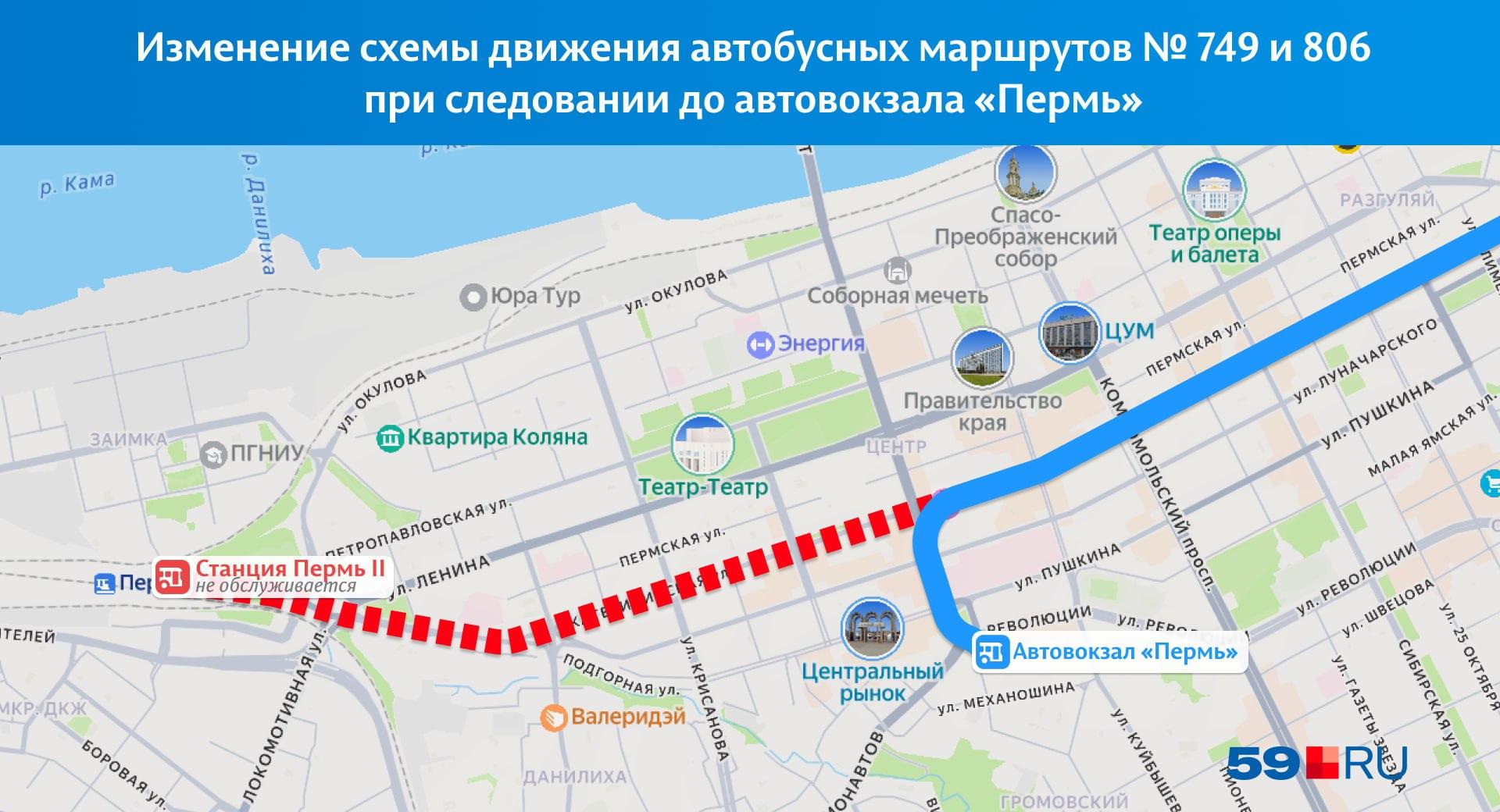 Схема движения автобусов до вокзала Пермь II будет изменена