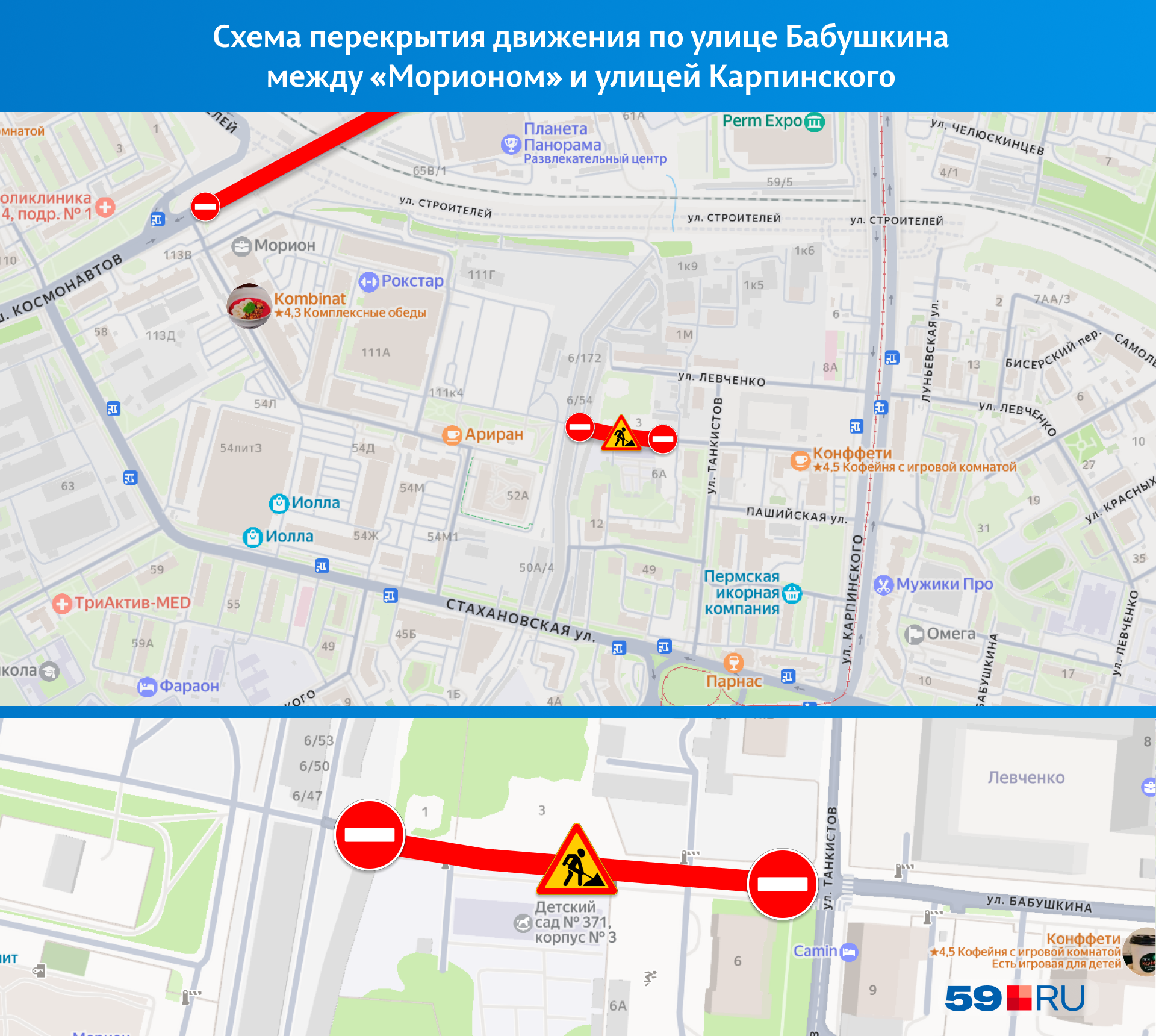 Перекрытый отрезок улицы Бабушкина является кратчайшим путём между технопарком «Морион» и районом Карпинки.