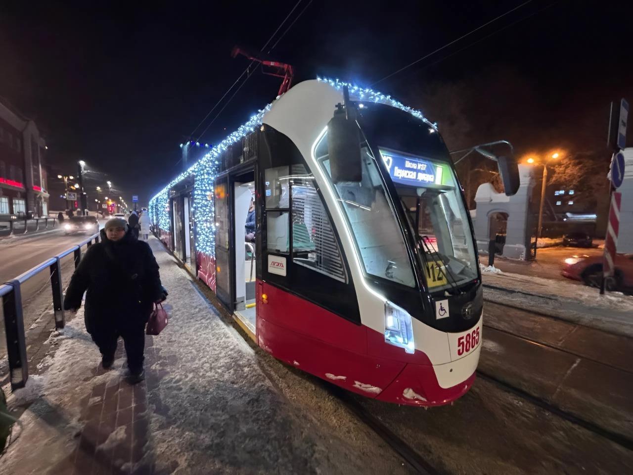 В социальных сетях появились сообщения о возвращении трамвая с фотографией, где он украшен гирляндой и стоит на остановке «Улица Максима Горького». Пользователи отмечают: «Лев вернулся».